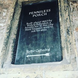 So we set off from Wells Cathedral. The Cathedral itself dominates this small city. The stone figures that adorn the outside of the cathedral show a Christian narrative in stone. I am sure there is a ‘who’s who’ of the 300 of the 400 remaining figures. I wonder how many of these apostles, angels, saints and mythical or allegorical beings have walked this route?