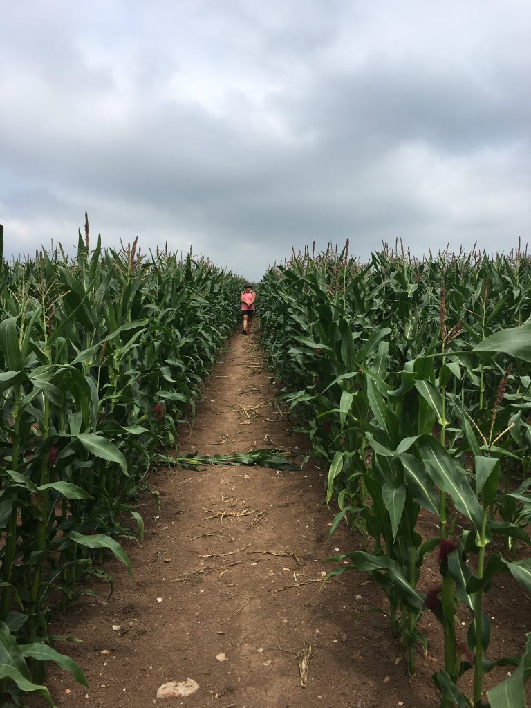 There, we navigate through large fields of Corn, with their large stalks towering over us.