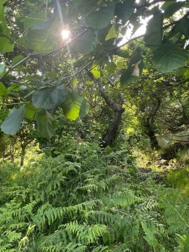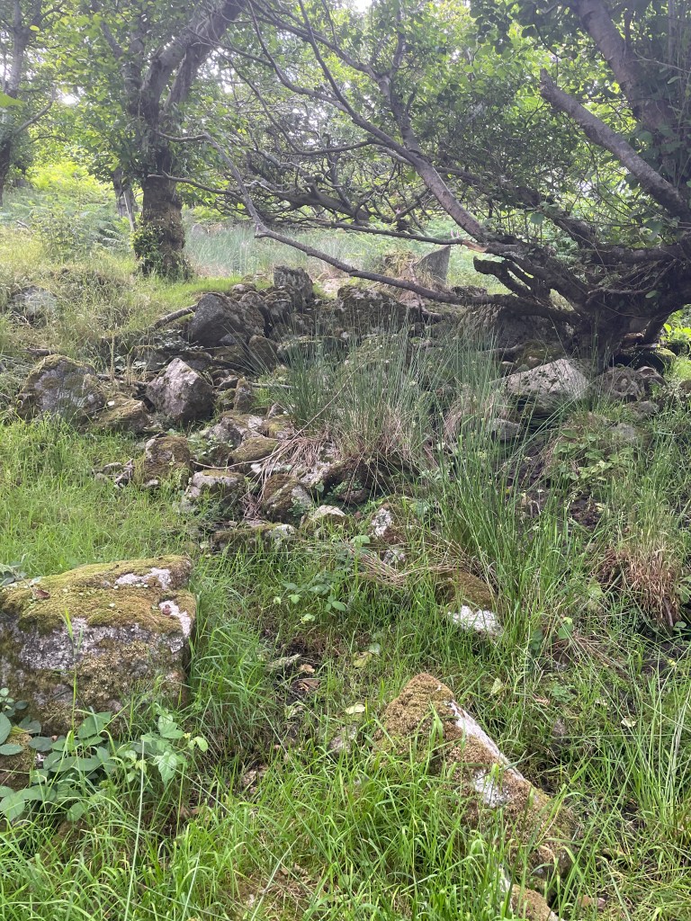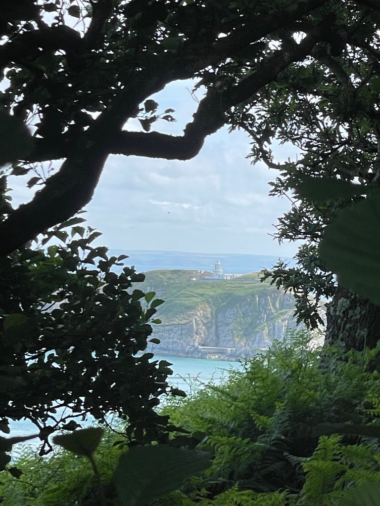 From here switching off my phone allowed me to be in the moment. In a way it felt different from being in any other place on the island. Its natural seclusion by way of the trees, set it apart as much of the island is barren and open. I was surrounded by greenery (July 2025) with just small peaks out to sea. It felt i was in hiding, even the wrens and the wood pigeons were startled when they saw me.