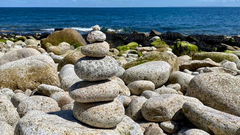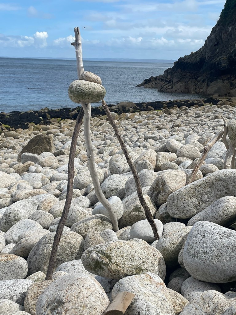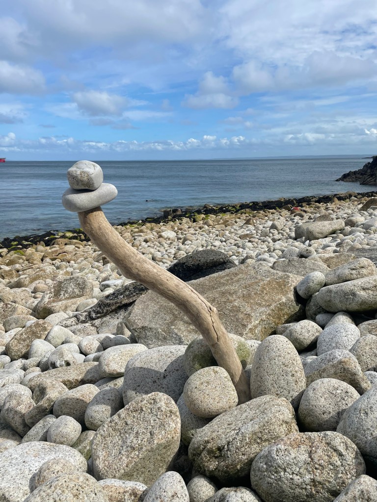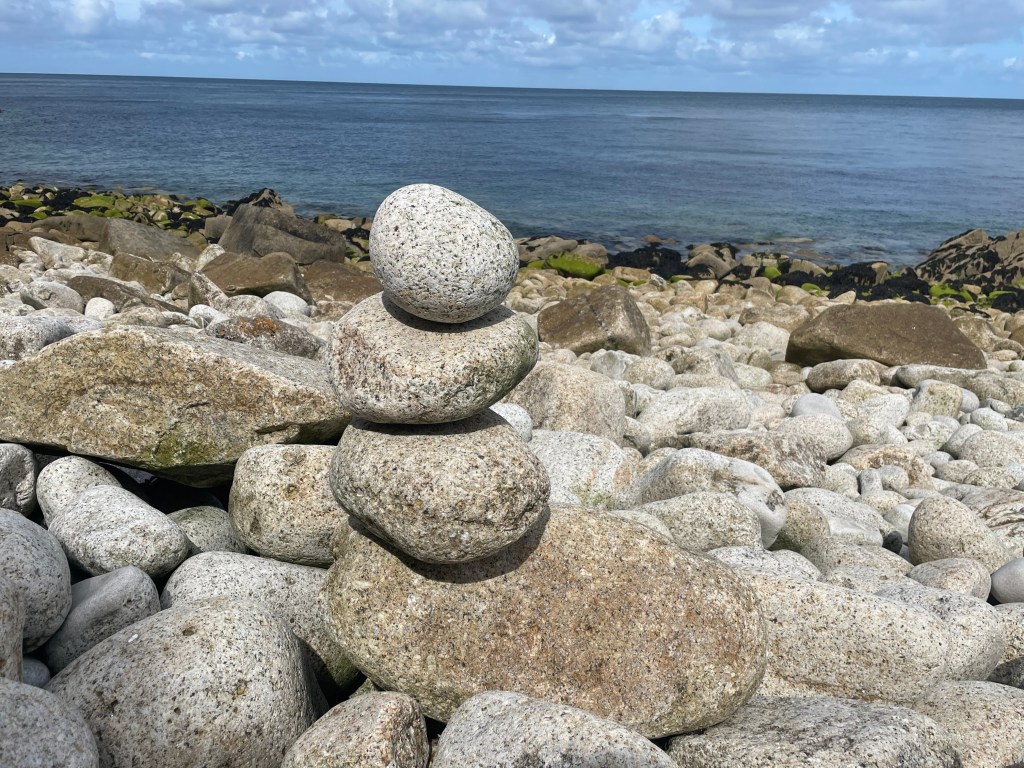 I think back to an earlier Summer. I found acts of physical balance in a variety of stone stacks left on Quarry Beach. Not only had their creator crossed the beach in an act of physical balance. But also the moments of concentration and care, in their building must have generated mental balance too.
