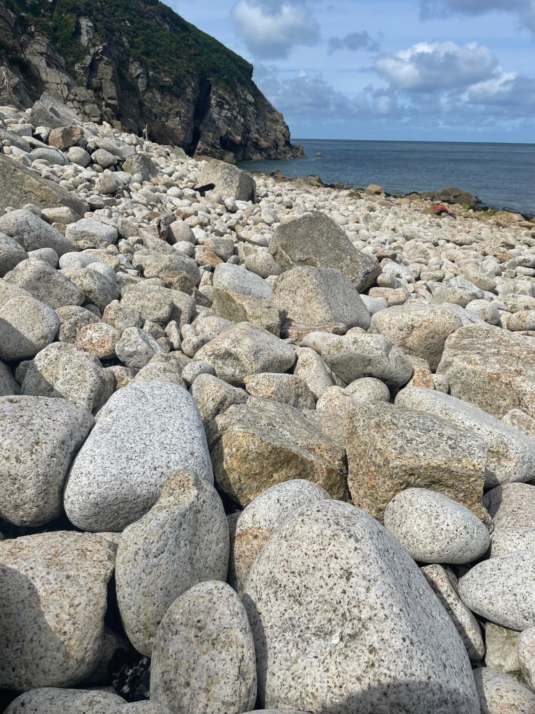 A walk on Quarry Beach makes me think about the importance of Physical balance. The boulders from the quarry, here run right down to the tide line. Crossing the beach requires care and adaptation. Sometimes this means moving slowly and deliberately on two feet. Other times, it means dropping down in a quadruped position, using hands and feet to stay steady. It isn’t elegant, but it works.