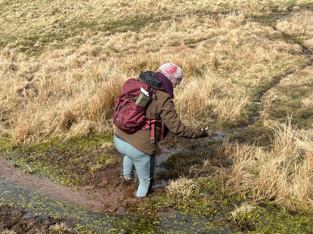 Paths North of Quarter wall can be difficult to follow. Navigating bogs and tussocks means lifting the legs high, paying attention to balance and rhythm. Progress here is uneven, slow and often messy!