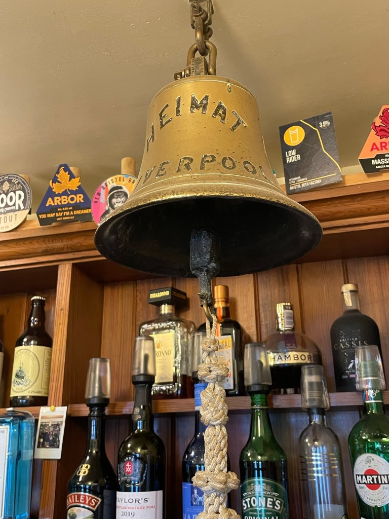 We don’t have permanent lighthouse keepers now. When the Trinity House employees visit the Tavern, there’s a sense of nostalgia. It echoes earlier times when the resident Keepers of Lights enjoyed a drink in the Tavern. Langham notes that the Tavern was once outside licensing laws. It isn’t now, I certainly feel a sense of history ringing the bell to call ‘Time at the bar’. A bell salvaged from a wreck.
