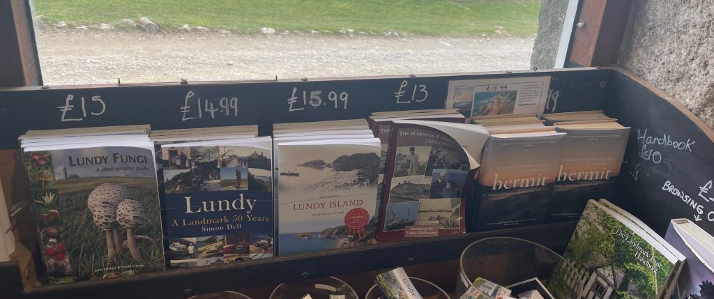 There is also a reference bookshelf of books linked to Lundy. These can be browsed in the Tavern. Many are available to buy from the shop if you want to spend more time with them. Reading about Lundy while being on the island adds another dimension. This is especially true when the places and stories you’re reading about are just outside the door.