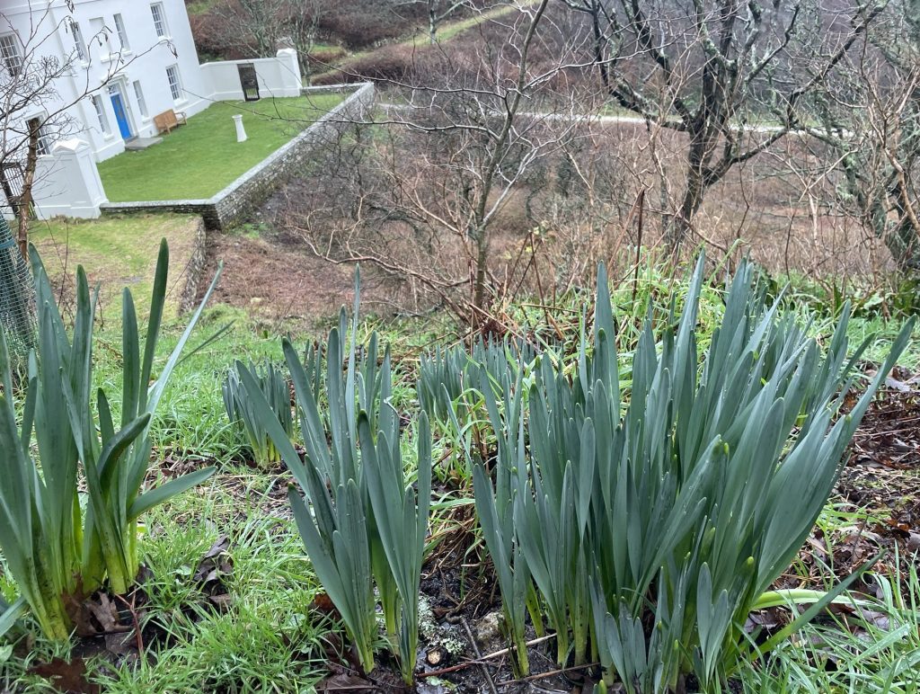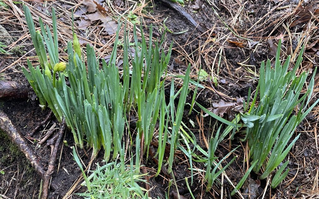Heading back up Millcombe Drive, there are daffodils coming up everywhere in front of the house. Nothing in bloom yet, but plenty of promise.